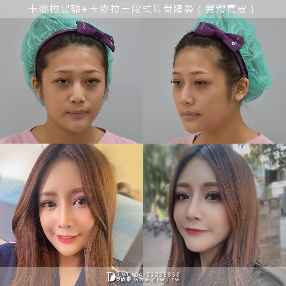 在一般的假體植入後,鼻樑或是鼻頭的真皮層組織會越來越薄,不但有破出來的危險性,如果還後還需要重建,通常會越來越不自然。而異體真皮重建手術後可以使原來的鼻部皮膚加厚,不但不會有植入物穿出之風險,即使未來需要進一步的鼻整形手術,也因為皮膚的彈性且厚度較佳所以會有較好的結果。